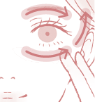 〈目の下・目の上〉目頭から目尻に向かってやさしく伸ばしながら
