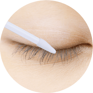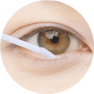 〈目の下・目の上〉目頭から目尻に向かってやさしく伸ばしながら